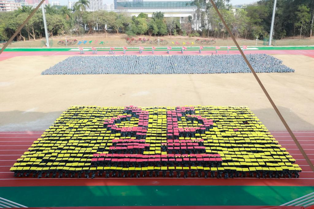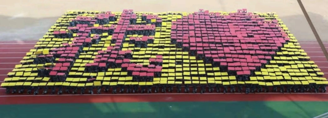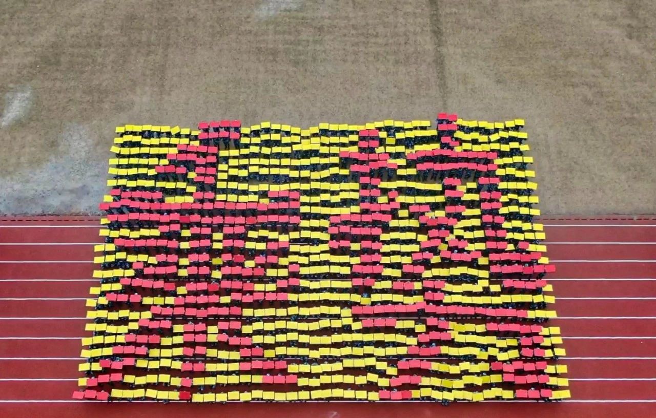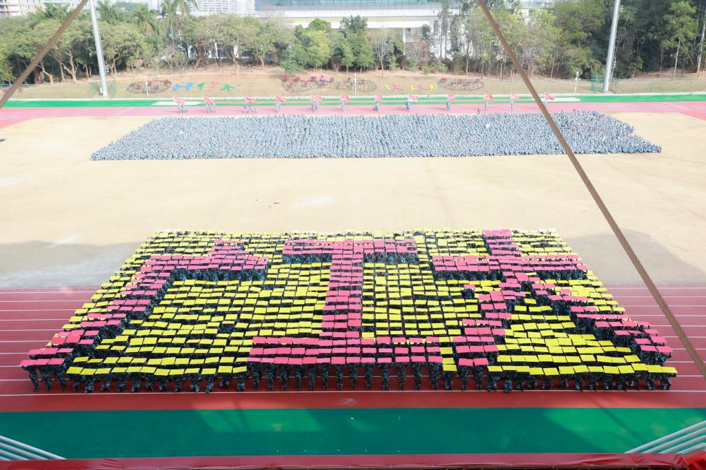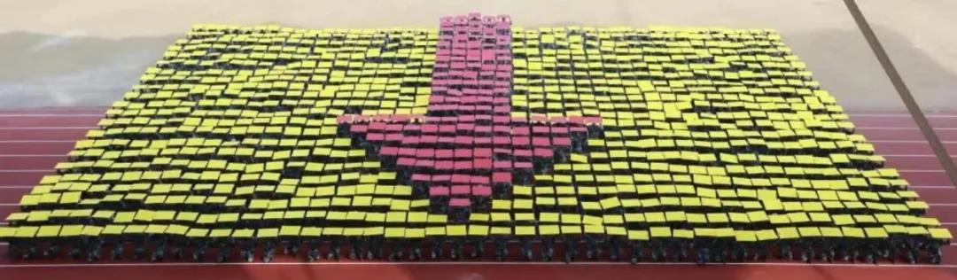 在音乐中,花样方队的同学们摆出各种造型