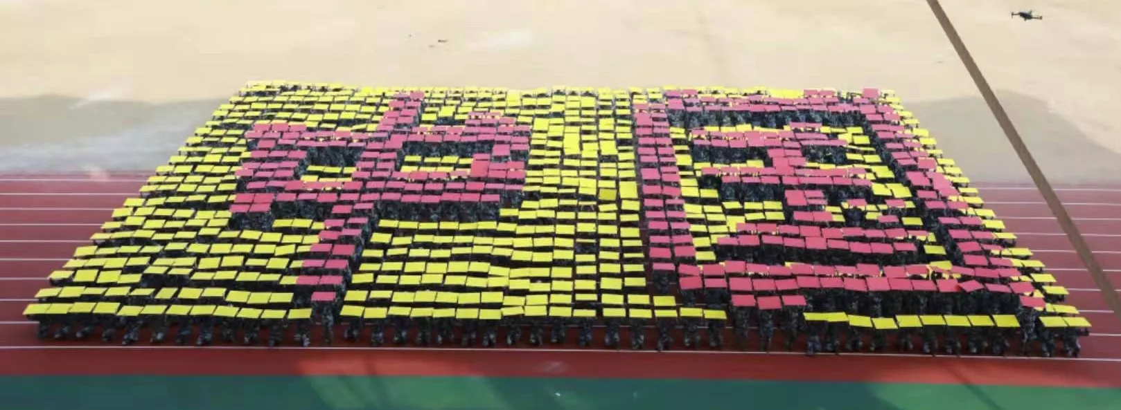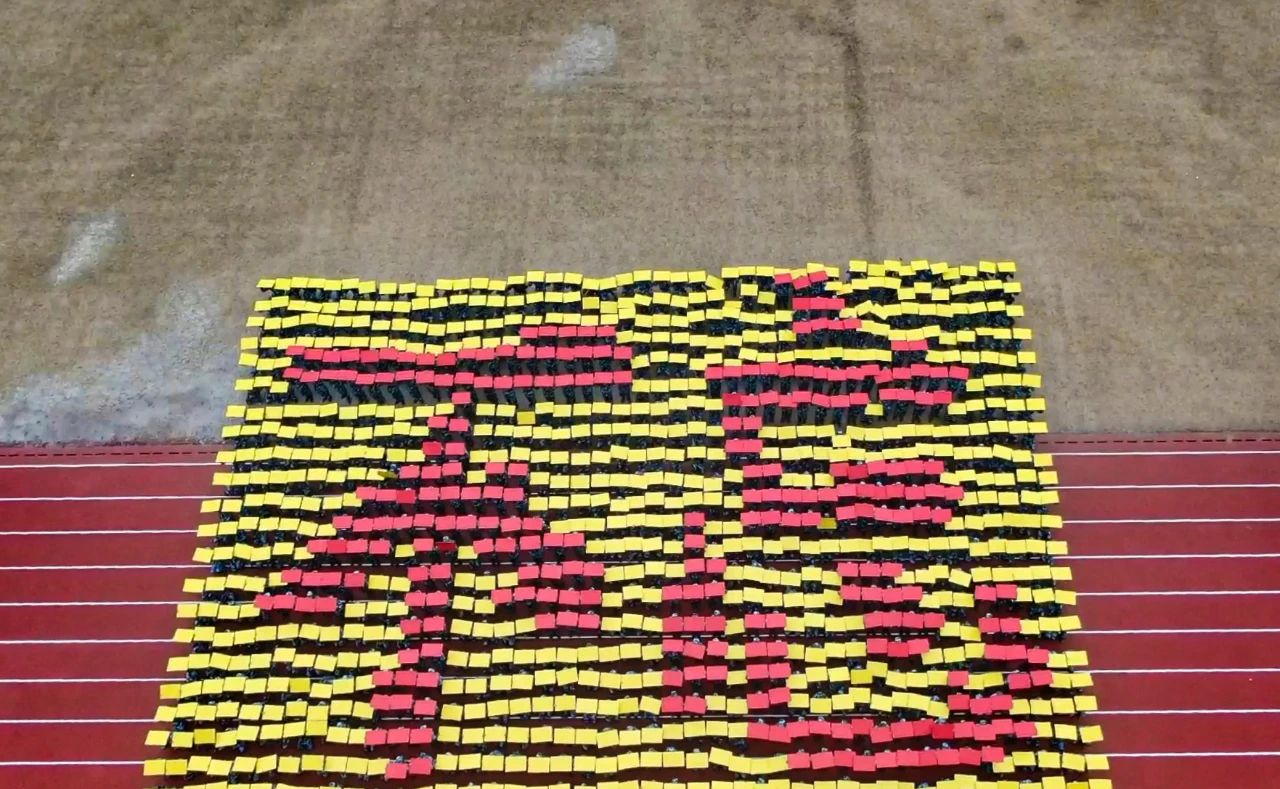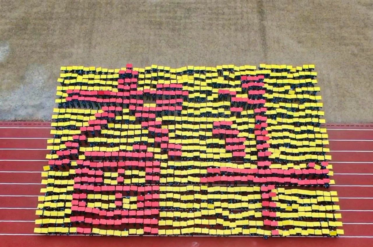 在音乐中,花样方队的同学们摆出各种造型