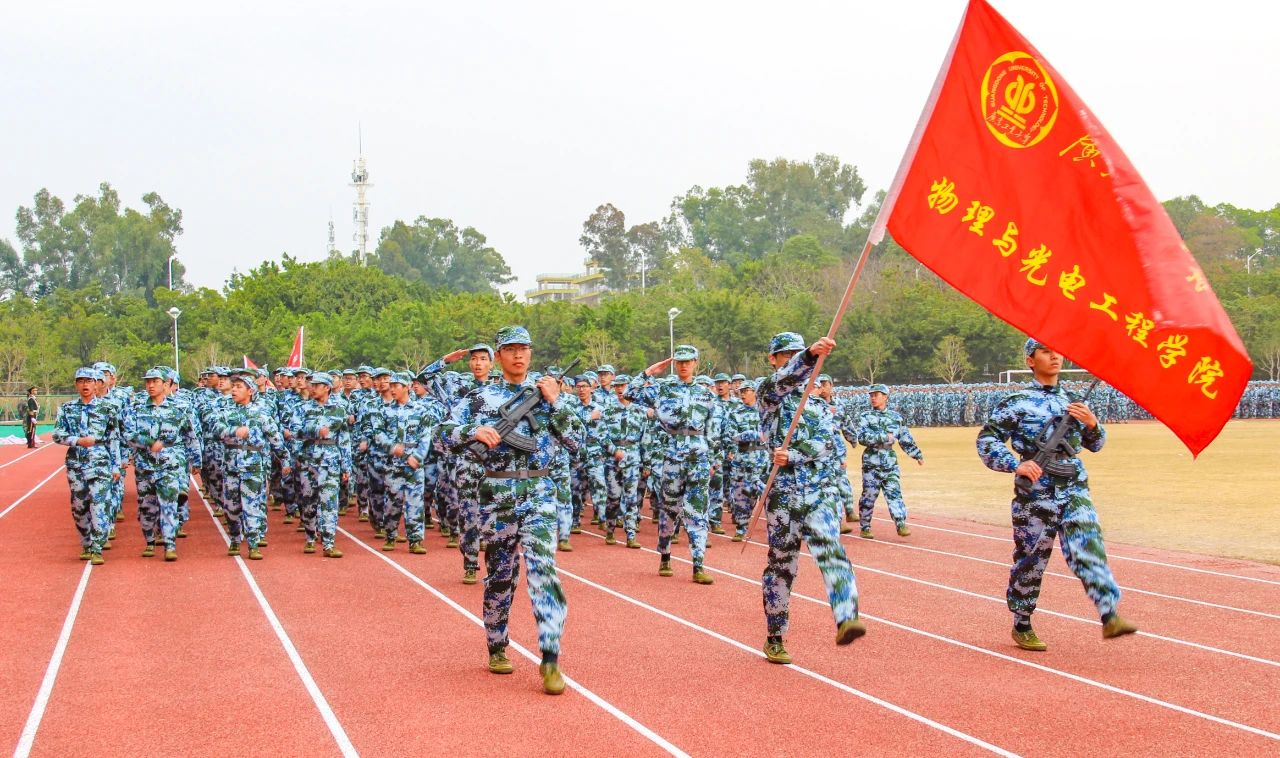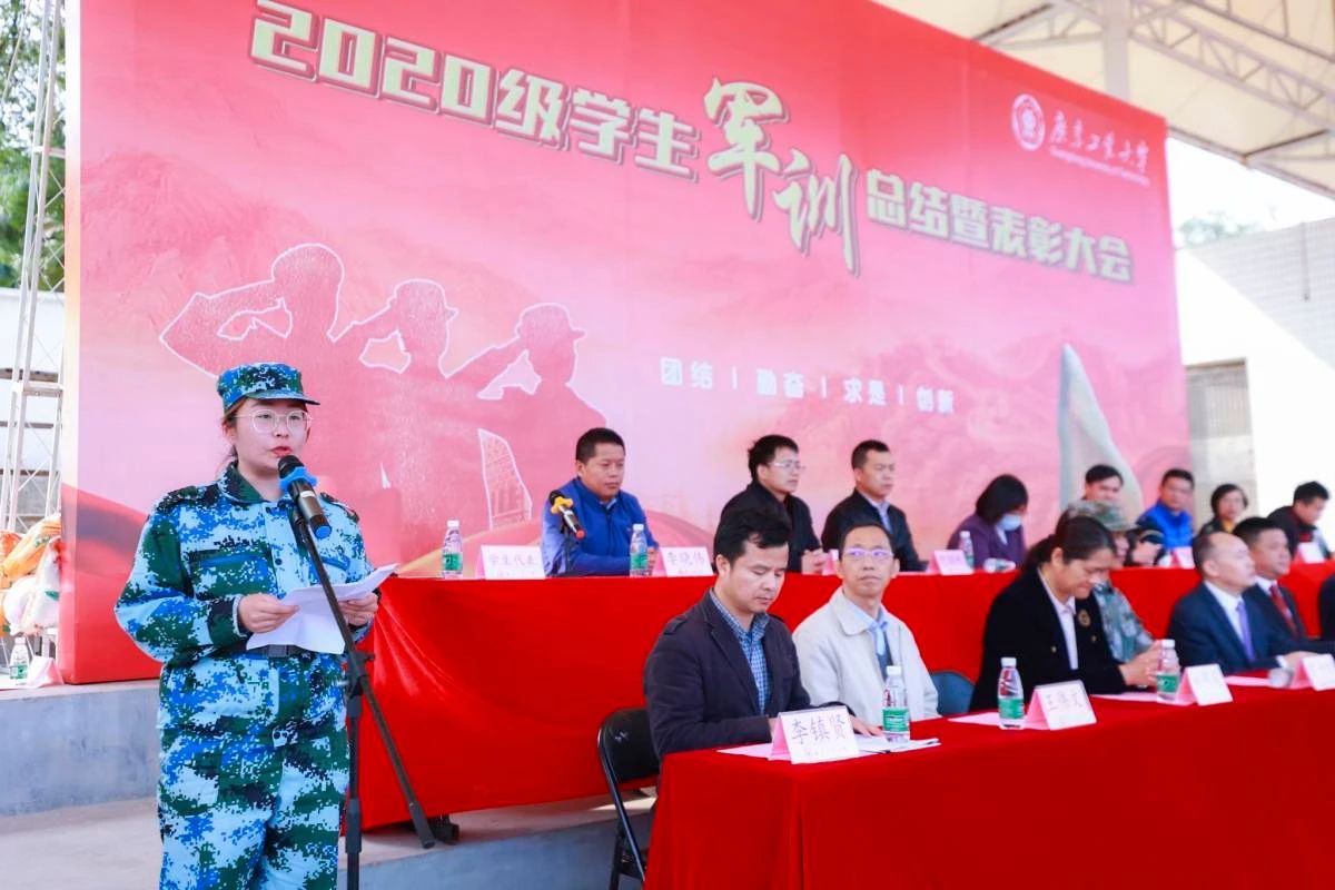 校长邱学青和副校长杜承铭分别在大学城校区和龙洞校区作军训总结讲话。邱学青表示,感谢承训教官以身作则、率先垂范、严格施训。他说,14天军训里,每一个响亮口号、每一次昂首阔步,都见证着同学们的成长与蜕变。他希望同学们砥砺奋斗精神,锤炼过硬本领;坚定理想信念,厚植家国情怀;牢记时代使命,争做时代新人。