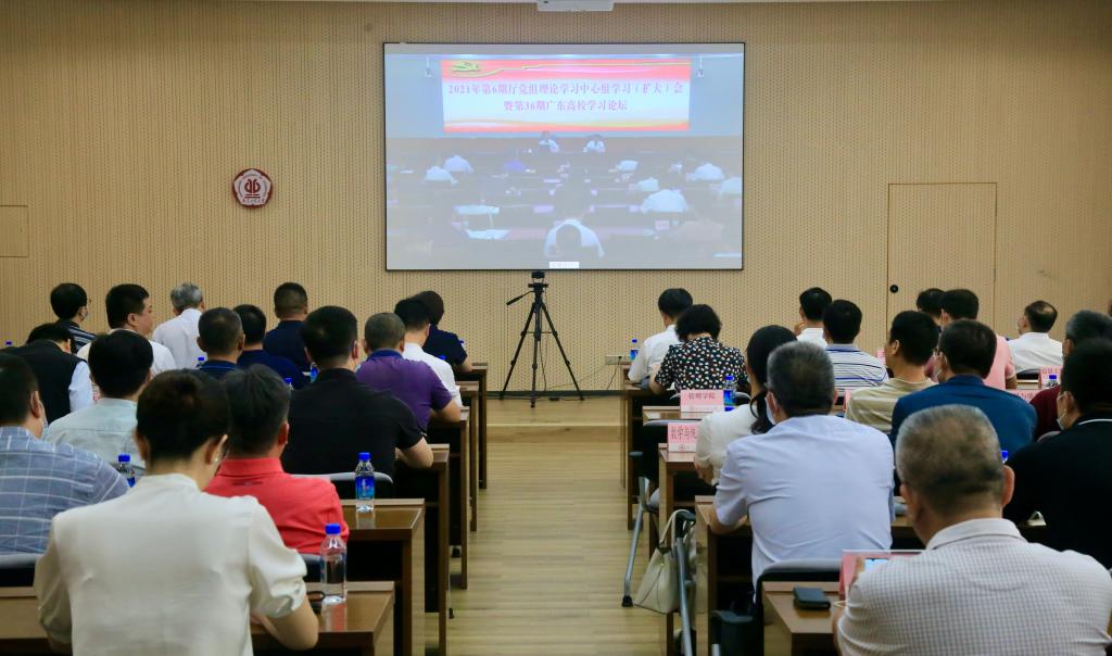 本网讯 7月22日,省委教育工委举办第36期广东高校学习论坛,邀请省委党史学习教育宣讲团成员,省委教育工委党史学习教育宣讲团团长,华南师范大学马克思主义学院院长、教授、博士生导师陈金龙,作题为“读懂中国共产党百年历史的根本遵循——学习习近平总书记‘七一’重要讲话”专题讲座。会议由省委教育工委委员,省教育厅党组成员、副厅长、一级巡视员朱超华主持。我校党委理论学习中心组以专题学习(扩大)视频会议形式在大讲堂第二会议室设立分会场,省委教育工委党史学习教育第五巡回指导组组长李海燕、成员方剑到会指导,学校党委书记胡钦太率理论学习中心组成员,学校党史学习教育领导小组成员、办公室成员,各机关部处负责人,各二级党组织主要负责人,近100人参加专题学习。