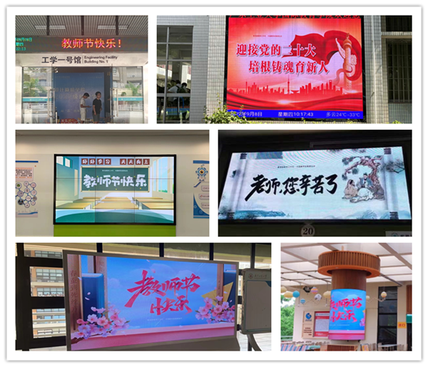 学校同时开展了“为教师亮灯”活动,在各校区办公楼、教学楼、实验楼等场所电子显示屏为教师“亮灯”,为广大教师送去节日的祝福!