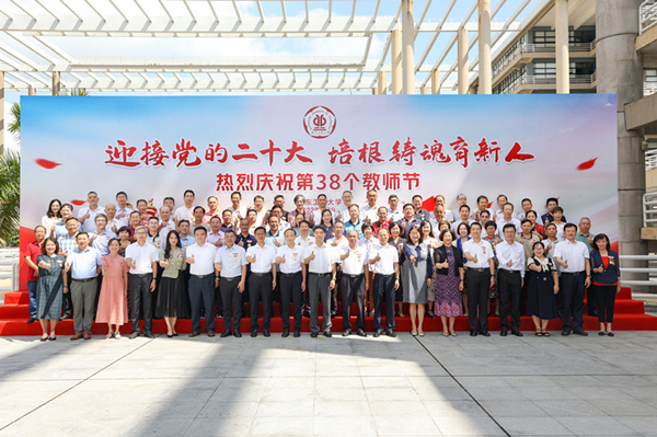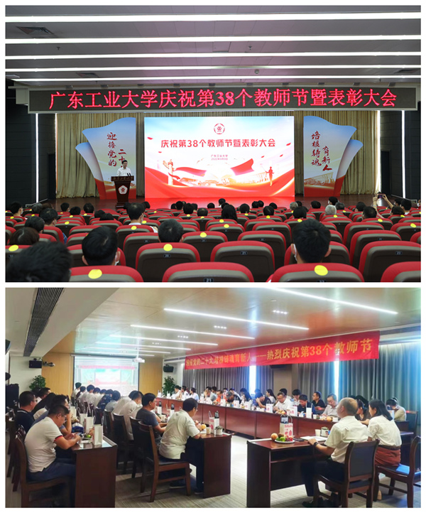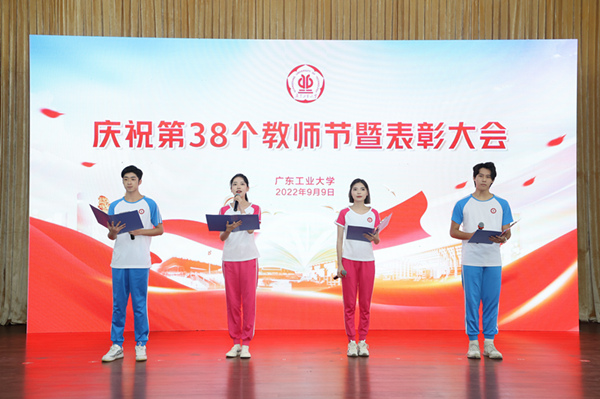 校党委书记胡钦太代表学校向为学校改革发展做出积极贡献的全校教师表示衷心感谢,并致以节日的问候和美好的祝愿!他强调,深入学习贯彻习近平总书记重要讲话精神,聚焦喜迎二十大、教师节庆祝等工作,多渠道、多形式、多层面组织开展师德教育宣传活动。他指出,广工人应抱有更远大的志向,在新时代新征程上,我们要牢记,人才培养是根本任务,人才是第一资源,学科建设是龙头和核心,服务社会是大学责任。他希望老师们政治素质要强,铭记使命,甘当人梯,既是科研事业的开拓者,又是提携后学的领路人;教育站位要高,拓展视野,更新知识,着眼世界学术前沿和国家重大需求,研究真问题,真解决问题;“五术”要求精,淡泊名利,以德立身,以教育学生进步为光荣职责,努力做习近平总书记所讲的“大先生”;以爱党爱国、自信自强的精神风貌,践行崇高师德、涵养师者匠心、厚植教育情怀,奋进新征程、建功新时代,以实际行动迎接党的二十大胜利召开。