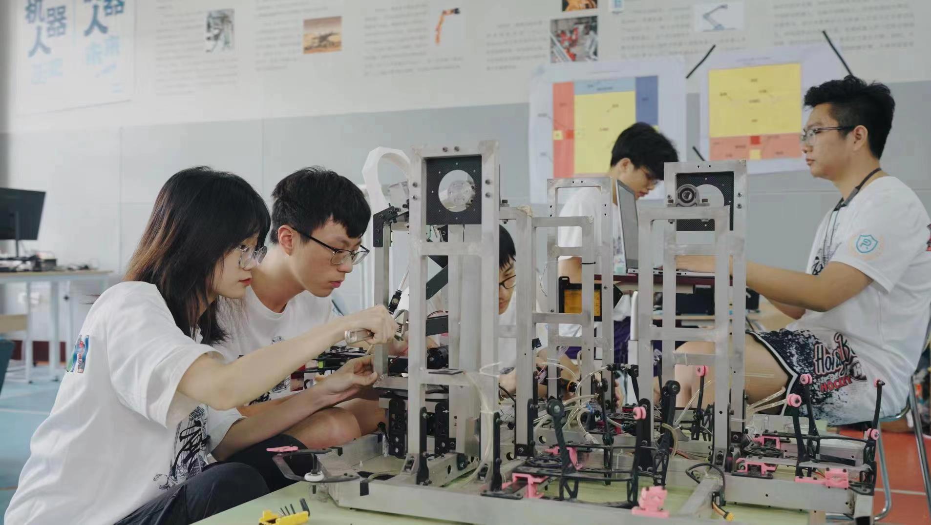 广工粤港机器人联合学院学生正在装配机器人