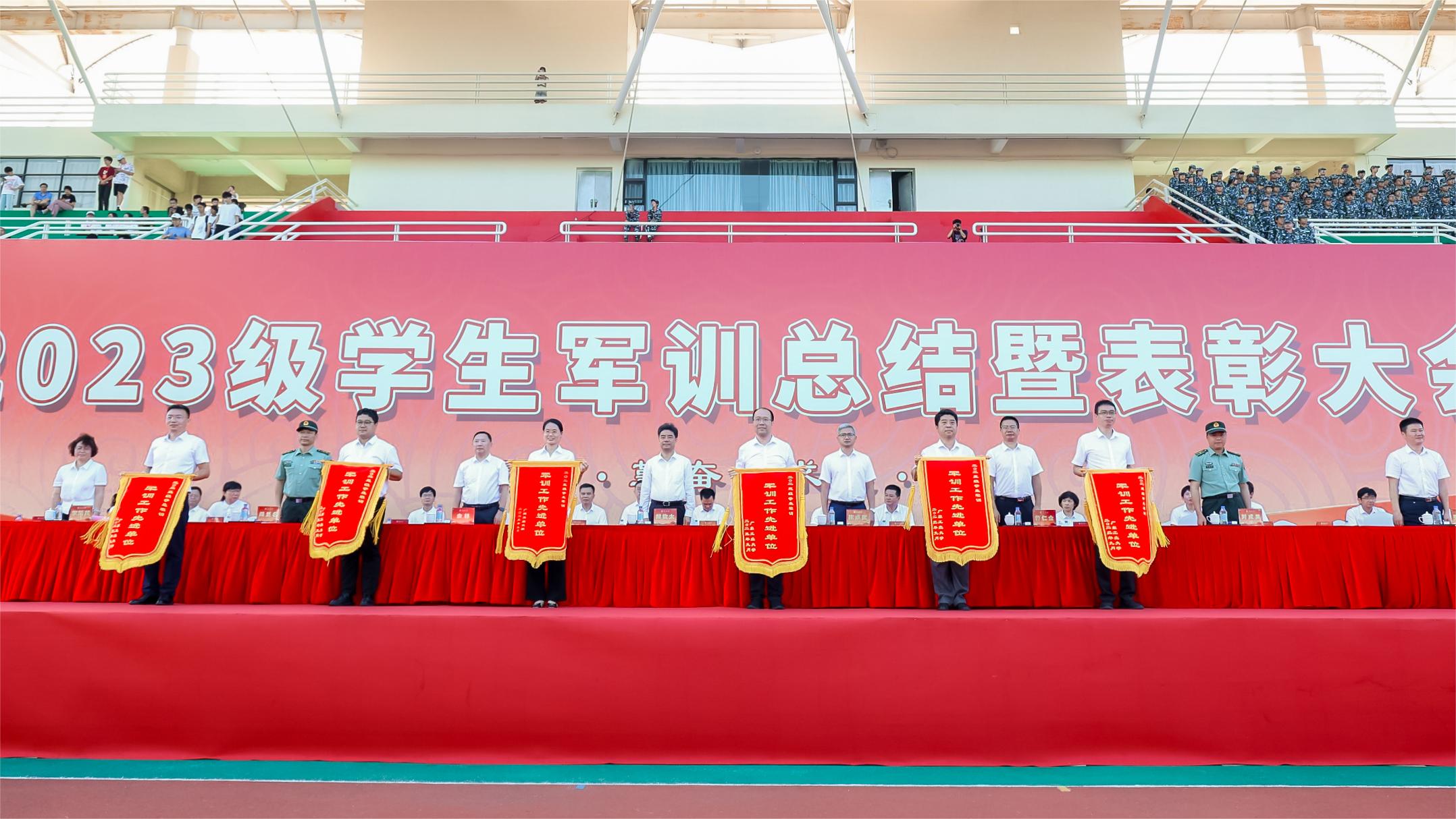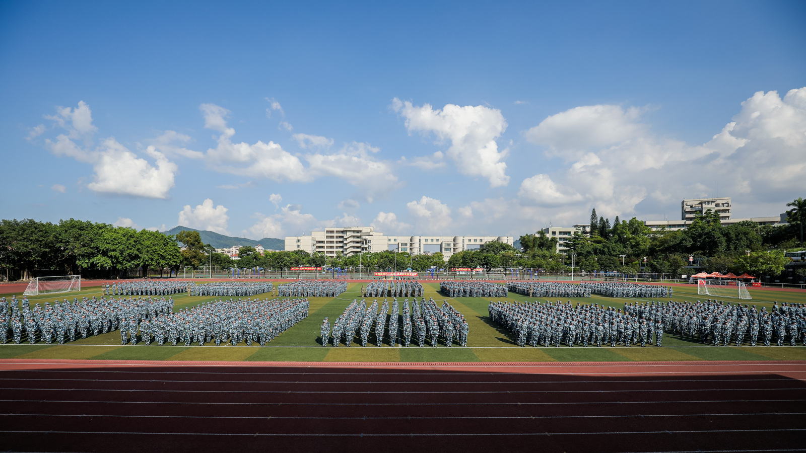 热血铸军魂,青春正当时。9月24日下午,leyu乐鱼·官方web站登录入口2023级学生军训总结暨表彰大会在大学城校区、龙洞校区和揭阳校区举行,东风路校区同学在龙洞校区参会,番禺校区同学在大学城校区参会。一万余名新生经过14天的淬炼与蜕变,以威武的军姿、崭新的风貌、昂扬的精神展示军训成果。