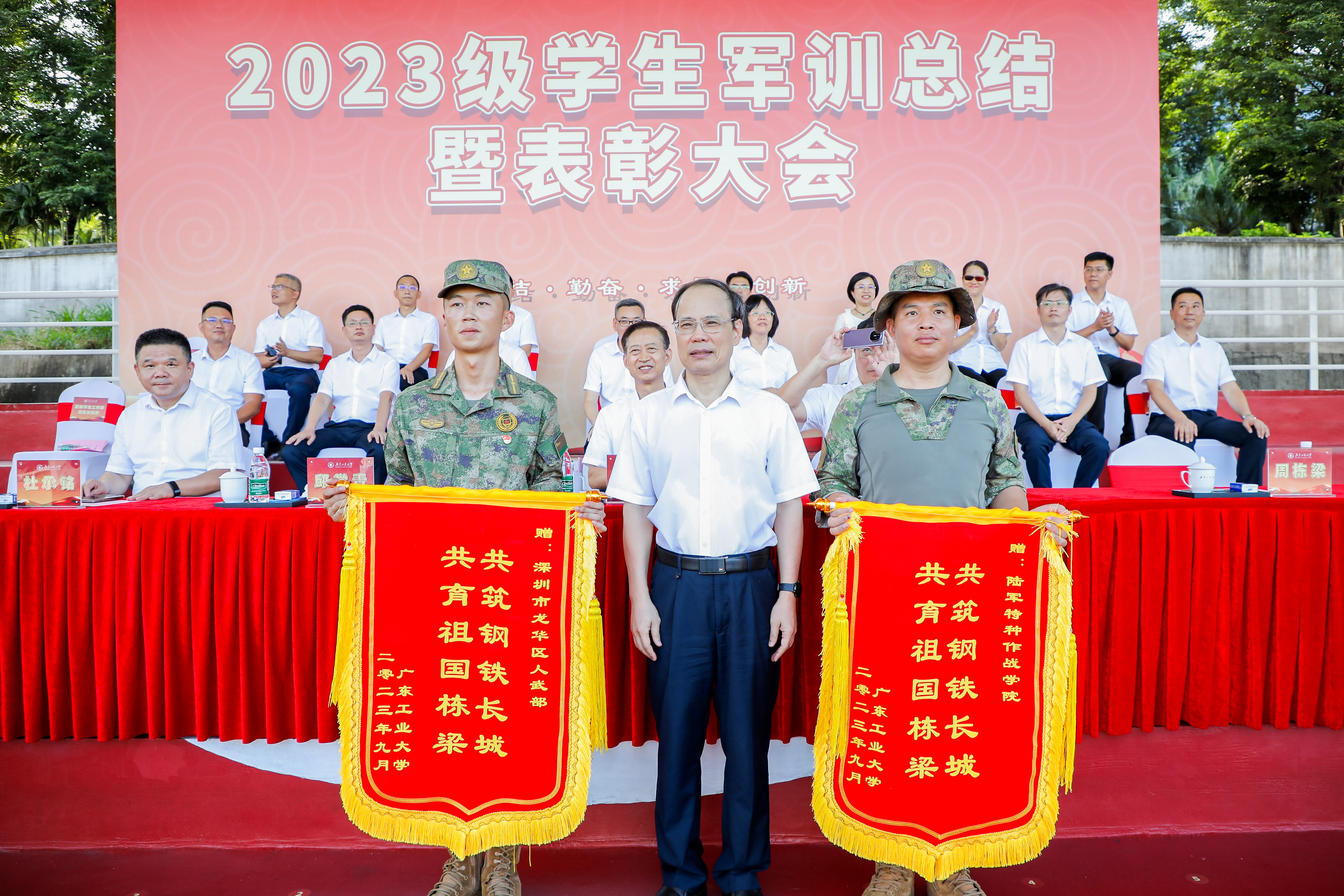 “逐梦新征程,攀撑创未来。站在新的历史方位,广大青年学子要立志做有理想、敢担当、能吃苦、肯奋斗的新时代好青年,为全面建设社会主义现代化国家贡献青春力量!”胡钦太、邱学青、朱蔚蔚作军训总结讲话,代表学校向承担军训任务的军训教官、军训工作人员和老师们表示衷心的感谢,向圆满完成军训任务的2023级全体本科生表示祝贺。并寄语同学们要坚定理想信念,永葆家国情怀不褪色;要发扬优良传统,坚持修身立德不变质;要练就过硬本领,接续团结奋斗不松懈,在“请党放心,强国有我”的时代号召下,在“团结、勤奋、求是、创新”的校训引领下,在“逐梦攀撑”的广工精神激励下,勇担时代重任,不负青春韶华,做有理想、敢担当、能吃苦、肯奋斗的新时代好青年,以更加优异的成绩迎接学校本科办学65周年,让青春在全面建设社会主义现代化国家的火热实践中绽放绚丽之花!