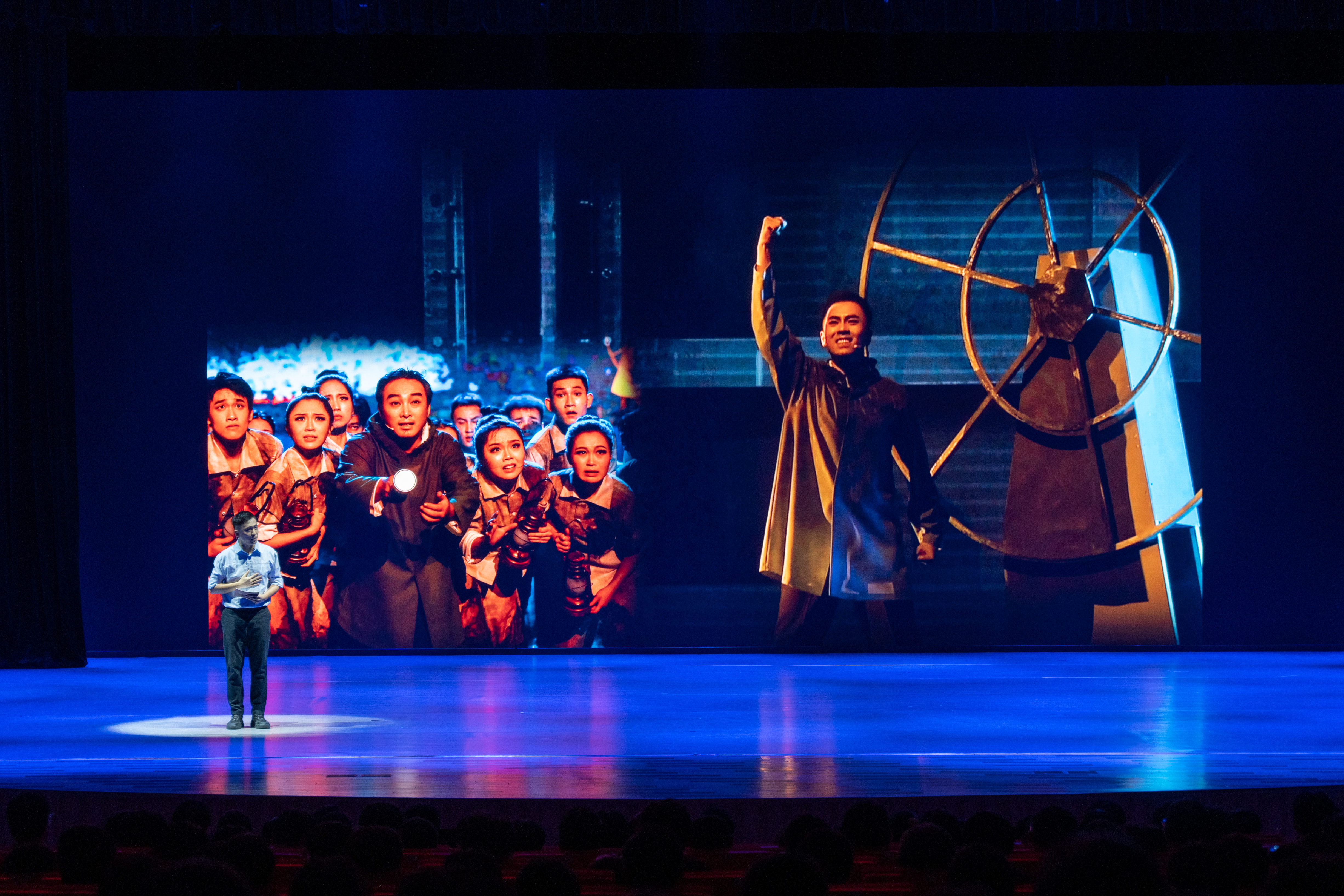 围绕胡钦太的授课主题,广工原创情景史诗剧《青春印丰碑》总导演郑萌和执行导演、剧目主演陈蕾分别走上舞台,以现场解说+视频展演的方式,把“青年担当”的思政教育内容融汇贯穿在艺术作品的欣赏之中。剧中原型人物、广工1965届校友、东深供水工程建设者代表陈汝基现身大荧幕现场连线,为学校即将迎来本科办学65周年送上祝福,为师弟师妹加油鼓劲。学校高水平舞蹈团演绎了剧目衍生舞蹈作品《洪流》。同学们跟随舞蹈演员的舞步回到热火朝天的“东深”建设现场,因临危受命而紧张,为风雨“征战”而揪心,被“人在,围堰在”的誓言所震撼……不知不觉间,不少同学红了眼眶。