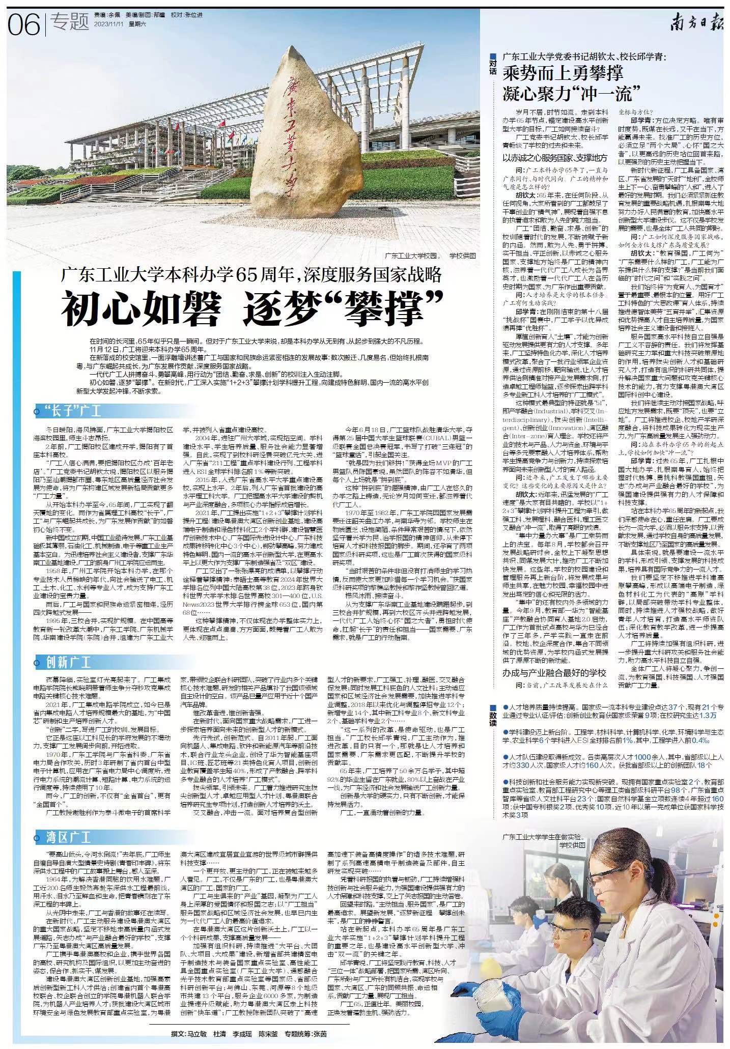 广工与生俱来的“产业”基因,凝聚为广工人身上深厚的爱国情怀和报国之志;以“广工担当”服务国家战略和区域经济社会发展,也早已内生为一代代广工人的最高价值追求。