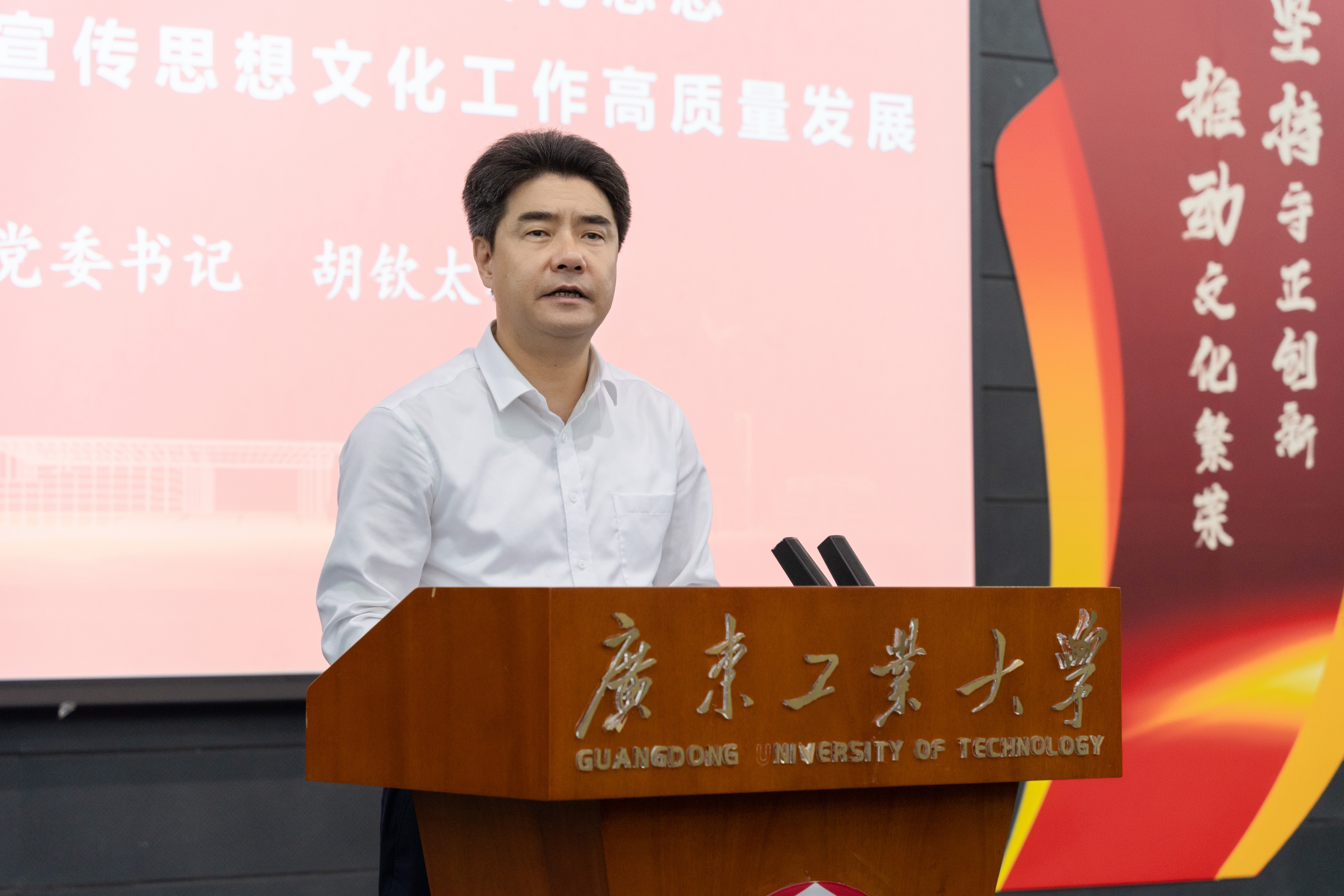 胡钦太在讲话中指出,要深入学习贯彻习近平文化思想,贯彻落实全国和全省宣传思想文化工作会议精神,加快推进学校宣传思想文化工作高质量发展。一要准确把握过去五年学校宣传思想文化工作取得的新进展、新成效;二要深入学习贯彻习近平文化思想,在深学细悟笃行中汲取奋进力量;三要全面推进“凝心铸魂工程”“文明提质工程”“文化浸润工程”“宣传提升工程”“‘护城河’工程”“五大工程”,在新征程上推动学校宣传思想文化工作高质量发展;四要强化学校党委对宣传思想文化工作的全面领导,进一步构建大宣传工作格局。他强调,要为学校高水平创新型大学建设提供坚强思想保证、强大精神力量、有利文化条件,为广东在推进中国式现代化建设中走在前列,展现广工担当、作出广工贡献。