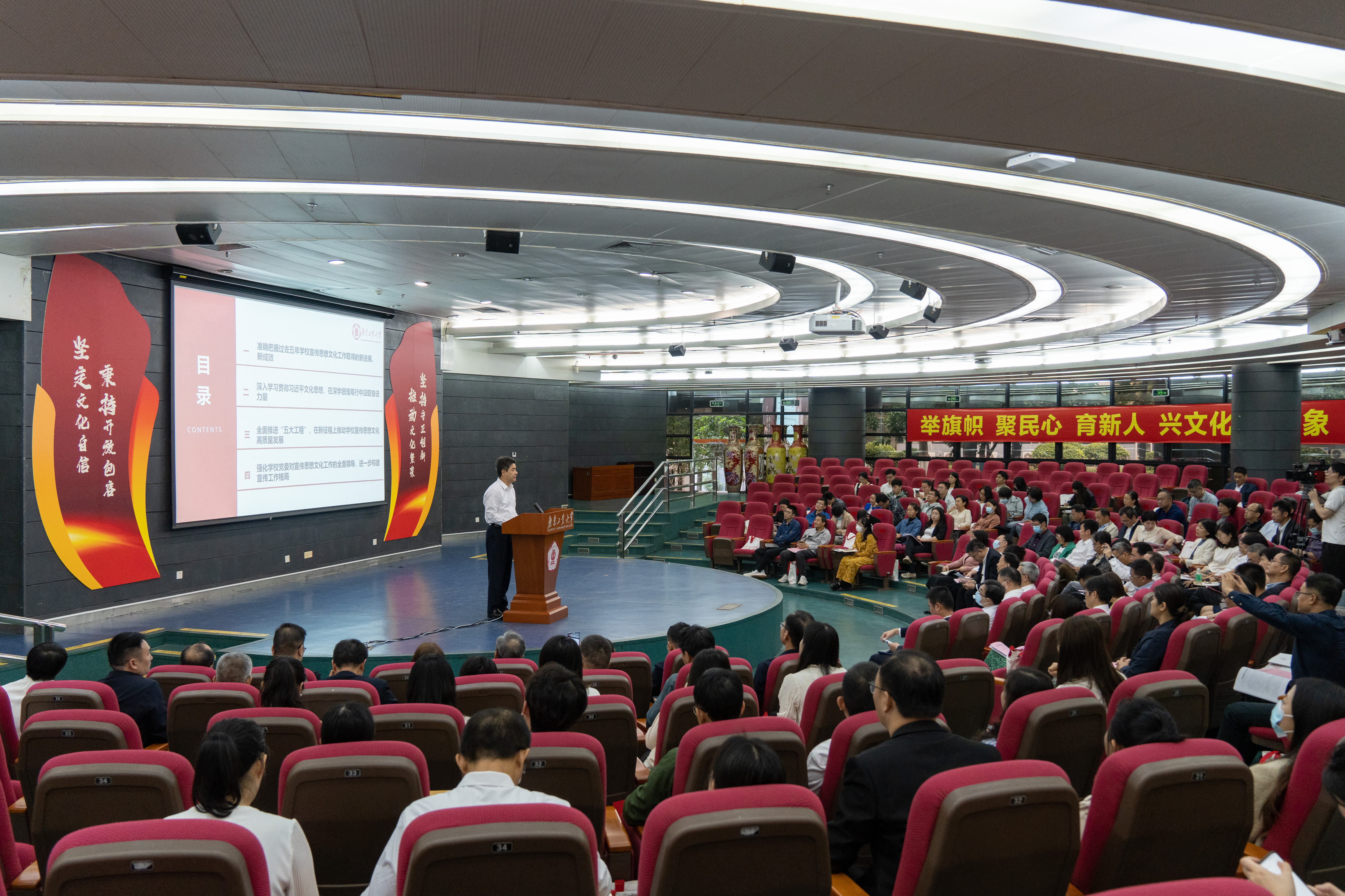 12月13日上午,学校在大学城校区大讲堂二楼圆弧报告厅召开宣传思想文化工作会议。会议传达了习近平总书记对宣传思想文化工作作出的重要指示精神和全国、全省宣传思想文化工作会议精神,对做好新时代新征程学校宣传思想文化工作进行安排部署。
