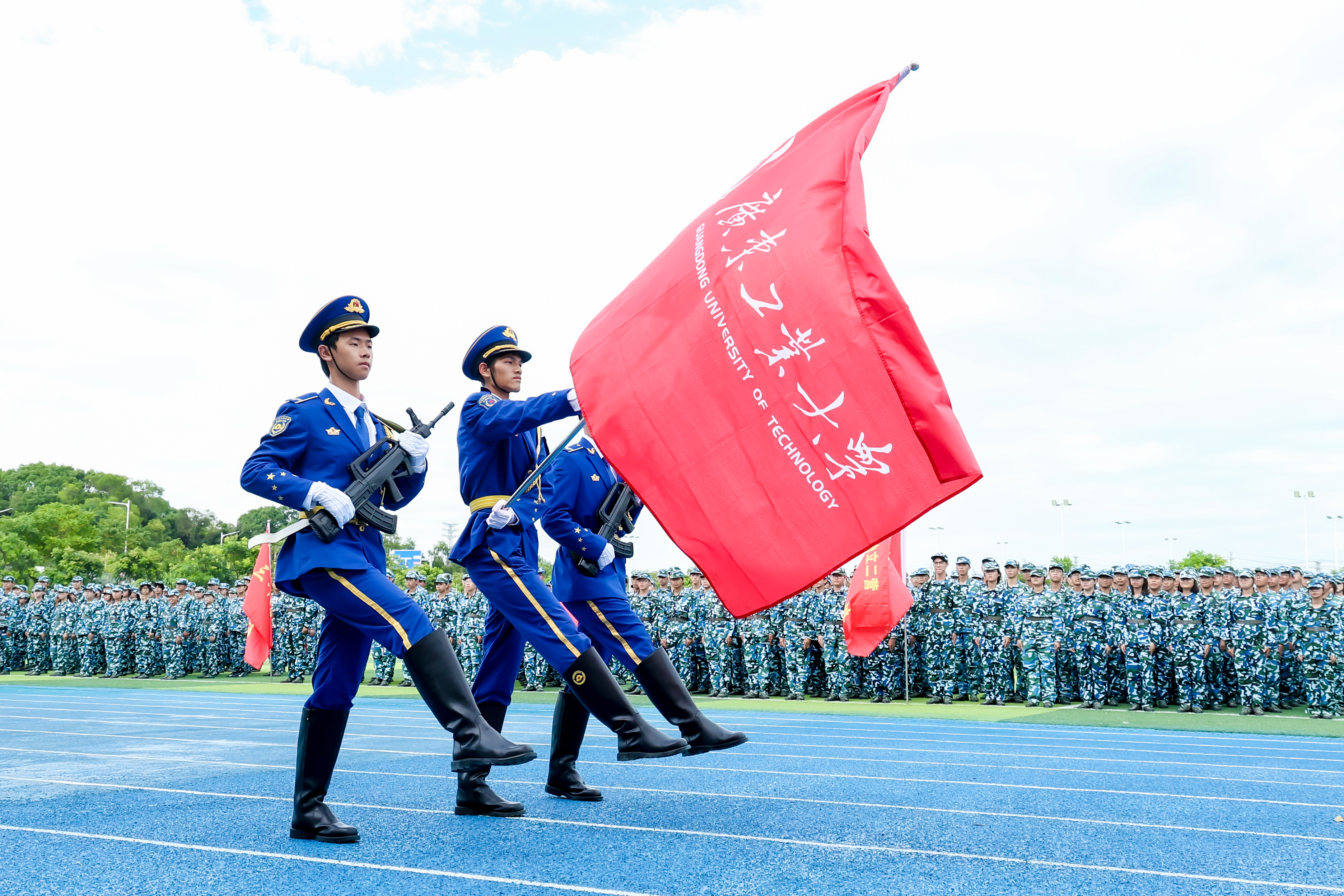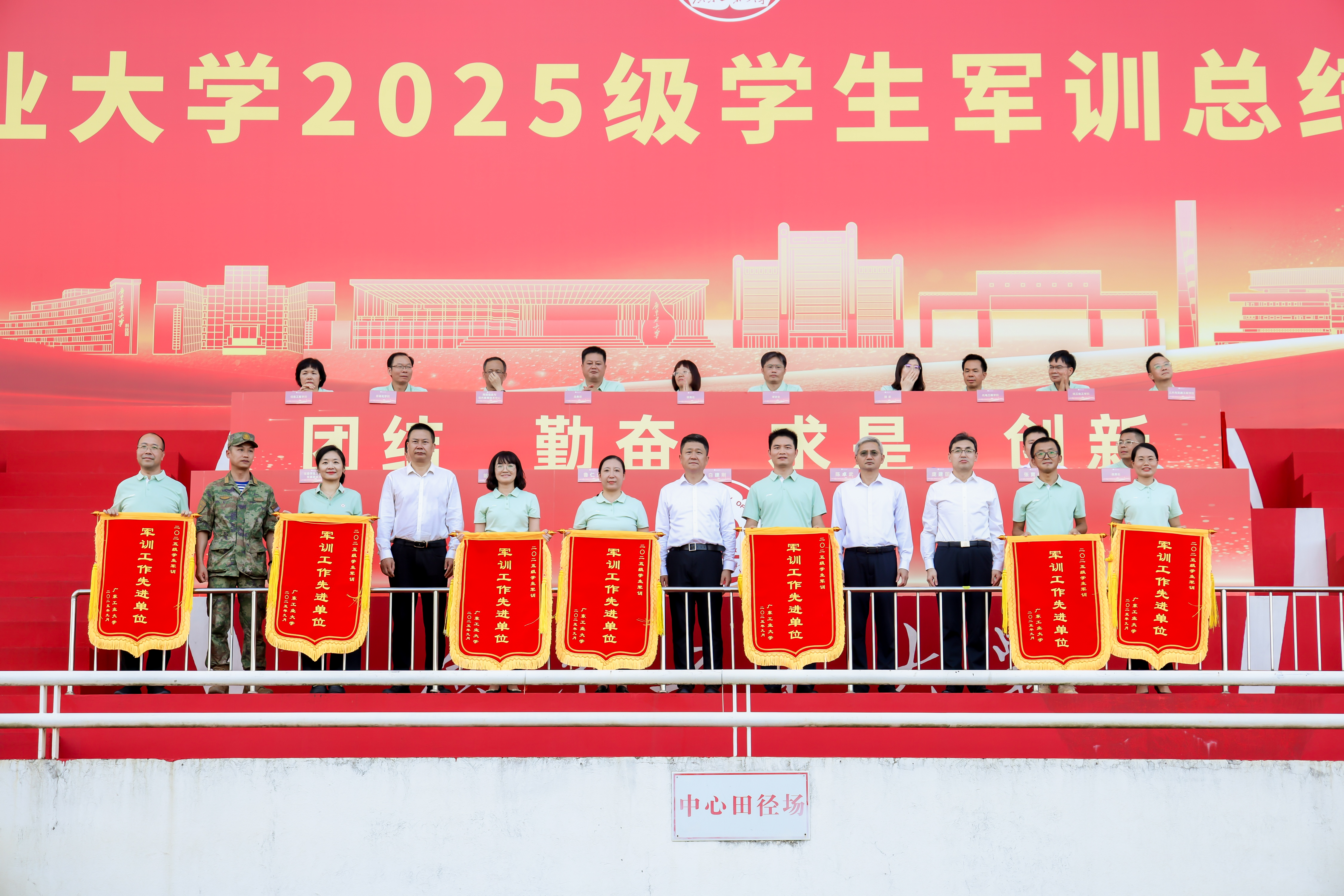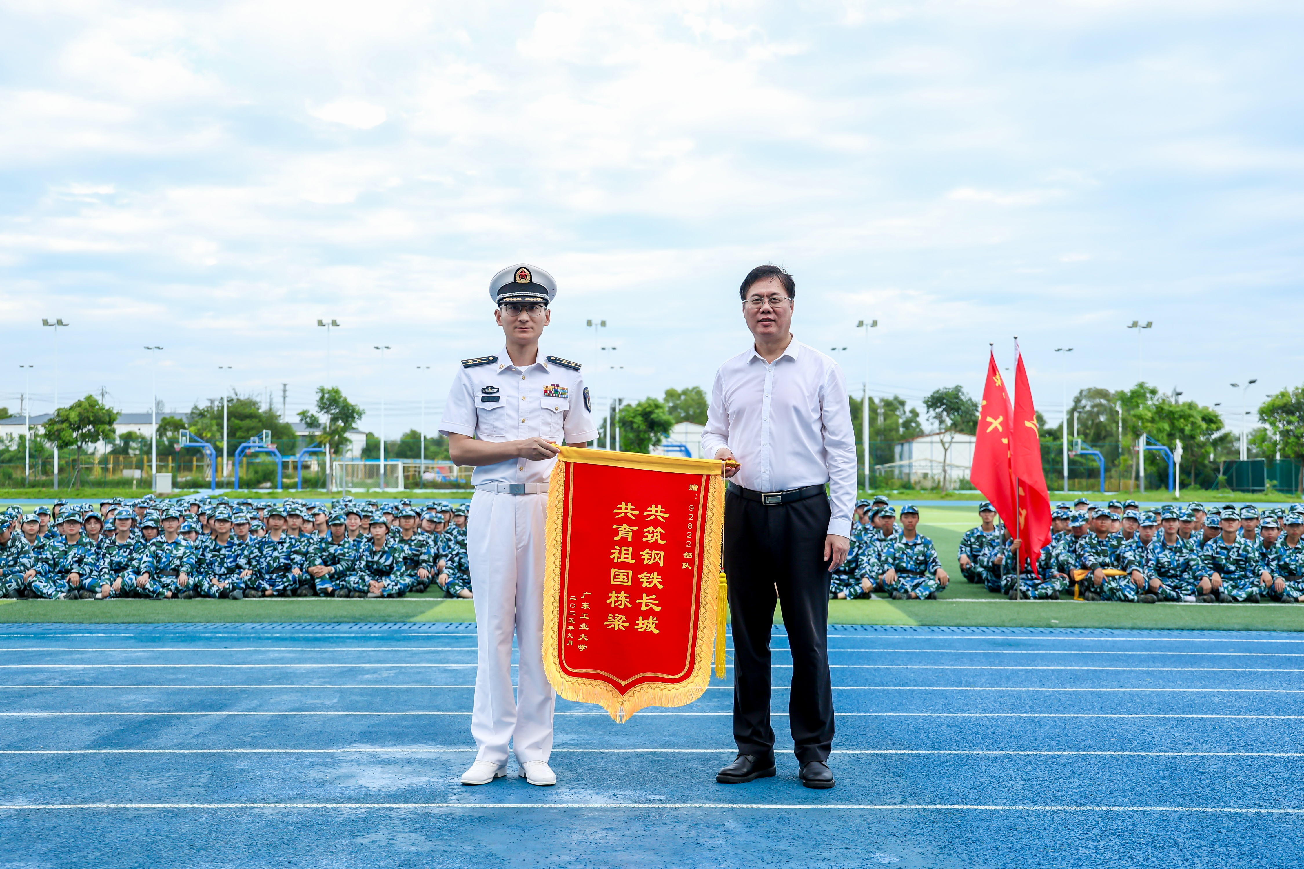 9月26日下午,广工2025级学生军训总结暨表彰大会在大学城校区、龙洞校区和揭阳校区举行,东风路校区同学在龙洞校区参会,番禺校区同学在大学城校区参会。14天的汗水与拼搏,一万余名新生实现蜕变,用最饱满的风貌交上了一份完美的青春答卷。