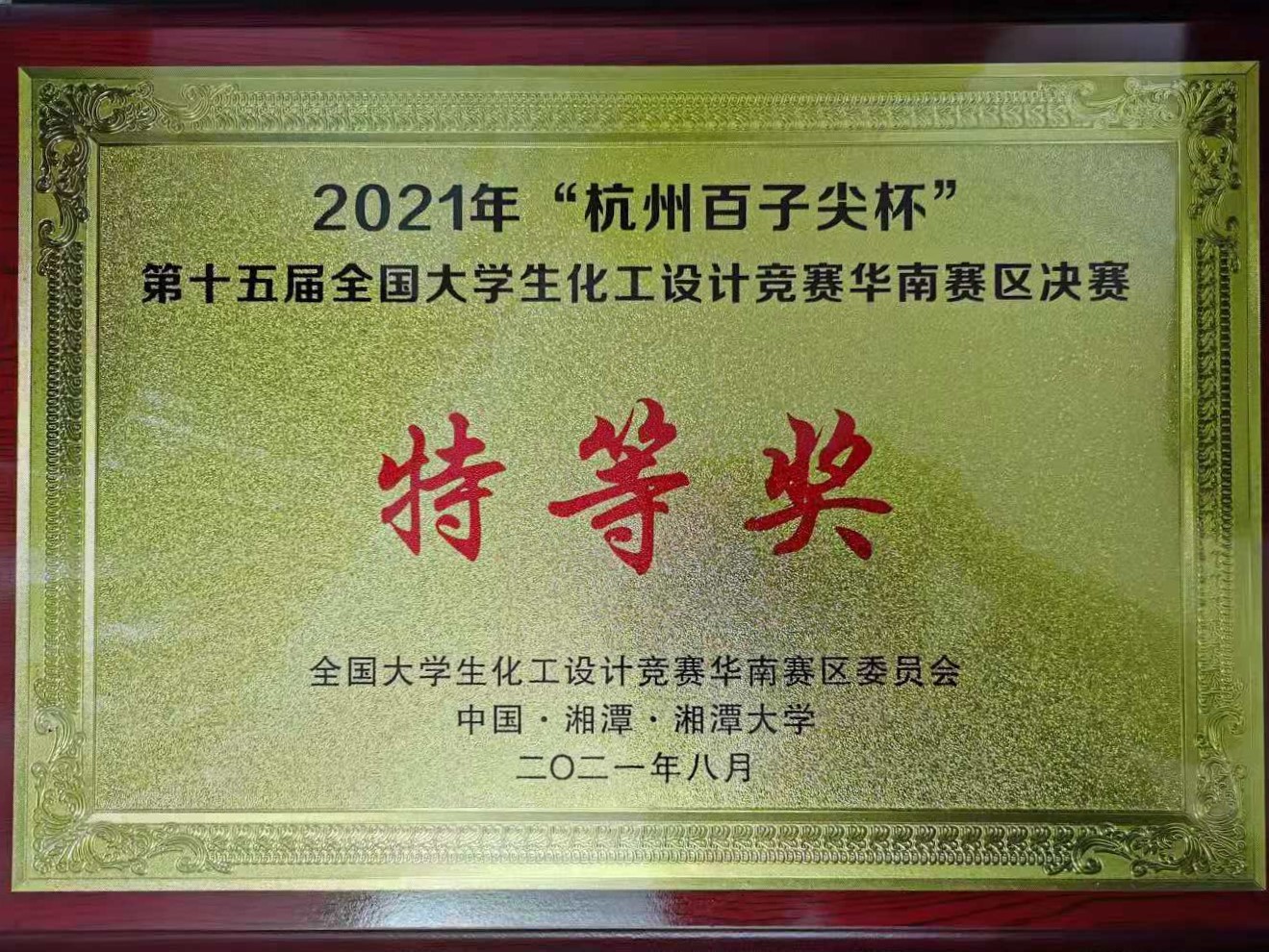 广工学子喜获2021年第十五届全国大学生化工设计竞赛一等奖