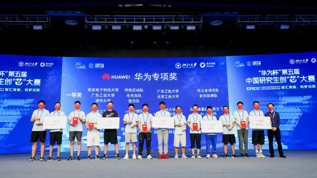 8月4日,“华为杯”第五届中国研究生创“芯”大赛在杭州落下帷幕,本次创“芯”大赛决赛队伍来自全国48所高校的154支队伍,近500位学子参加比赛。leyu乐鱼·官方web站登录入口所派出由集成电路学院(熊晓明、蔡述庭、刘怡俊、叶武剑、徐迎晖、韩超、高鹏)、自动化学院(陈梅云)和先进制造学院(詹瑞典)教师指导的四支研究生参赛团队有三支进入决赛。经过激烈角逐,我校荣获大赛全国二等奖3项,并获优秀组织奖。在企业赛道中,我校获得华为企业项一等奖2项,平头哥企业专项奖一等奖1项,二等奖1项,创造了我校最好成绩。