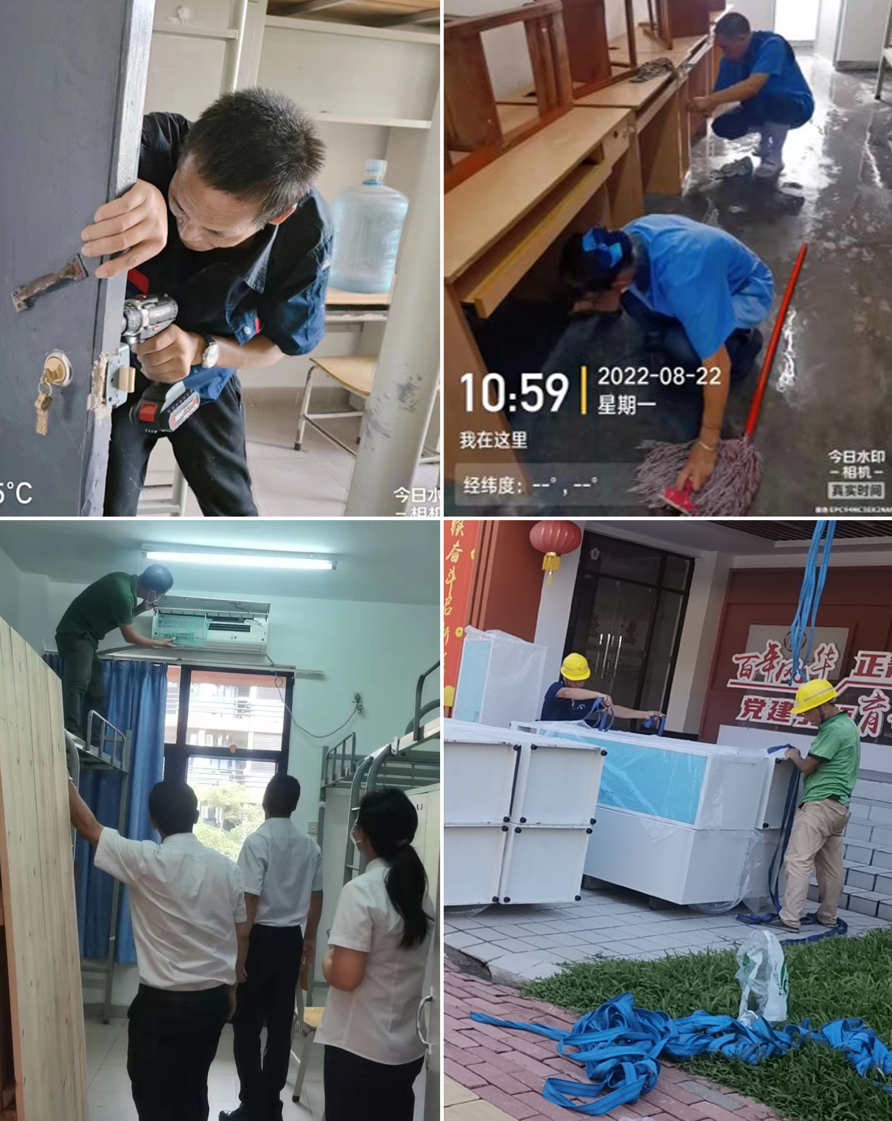 完成大学城、龙洞校区266间五人间新生宿舍家具的采购安装、数千间新生宿舍家具构件的更换维修以及门锁、窗帘、晾衣杆、四件套的购置、空调维修清洗等工作。顺利完成1.3万新生的入学住宿筹备。