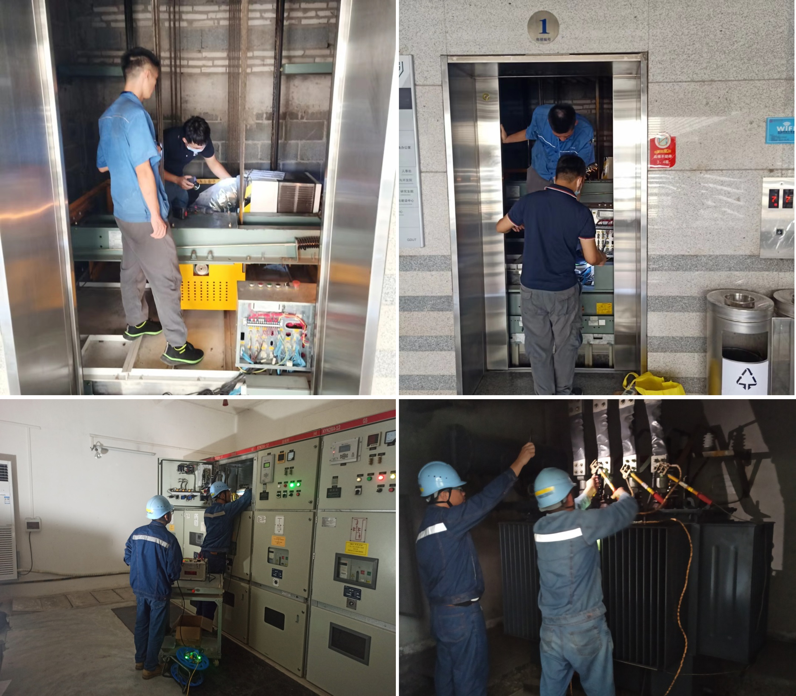 同时,完成全校电梯、高压电房、低压电房、中央空调等的维保、检修和水电保障抢修。