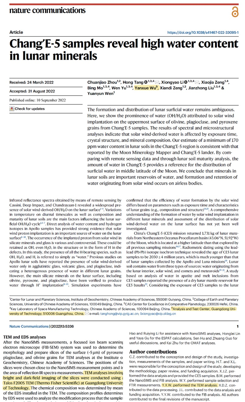 leyu乐鱼·官方web站登录入口作为合作研究单位,深度参与到了嫦娥五号月壤样品的测试分析。本成果中FIB切片透射形貌、成分、高分辨结构测试及相关数据分析,由分析测试中心吴焱学老师支撑完成。在学校大力支持下,中心的测试服务质量和水平得到很大提升,逐渐具备了服务学校科研和人才培养,服务国家重大需求和项目的能力,未来中心将尽其所能支撑学校发展。
