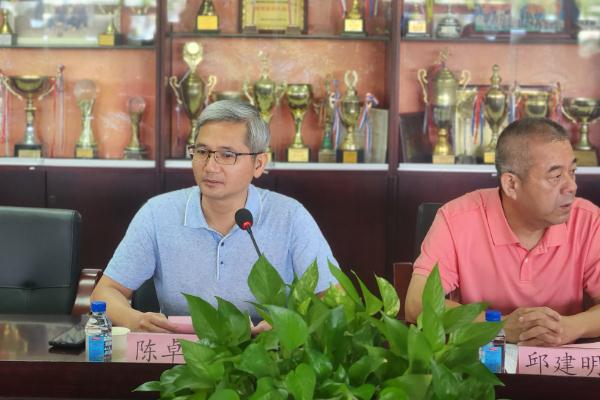 陈卓武代表学校欢迎2022级高水平运动队新生加入广工大家庭,希望同学们珍惜难得的学习机会,不辜负家长和自己的选择。他以《爱校荣校》为题,解读了校徽校训的含义,介绍了校歌歌词的基本要素,讲清说透了校情和校史重要节点、重要事件、重要成果,阐述了学校办学理念的内涵及外延。并指出,学校发展的每一步都是广工人拼出来的,师生“拼搏自强”、彼此成就。他希望同学们能端正学习态度、尊师重教;传承广工体育精神,接力为校为省争光;积极发挥影响力,带动更多同学参与体育锻炼,营造良好的校园体育文化氛围。