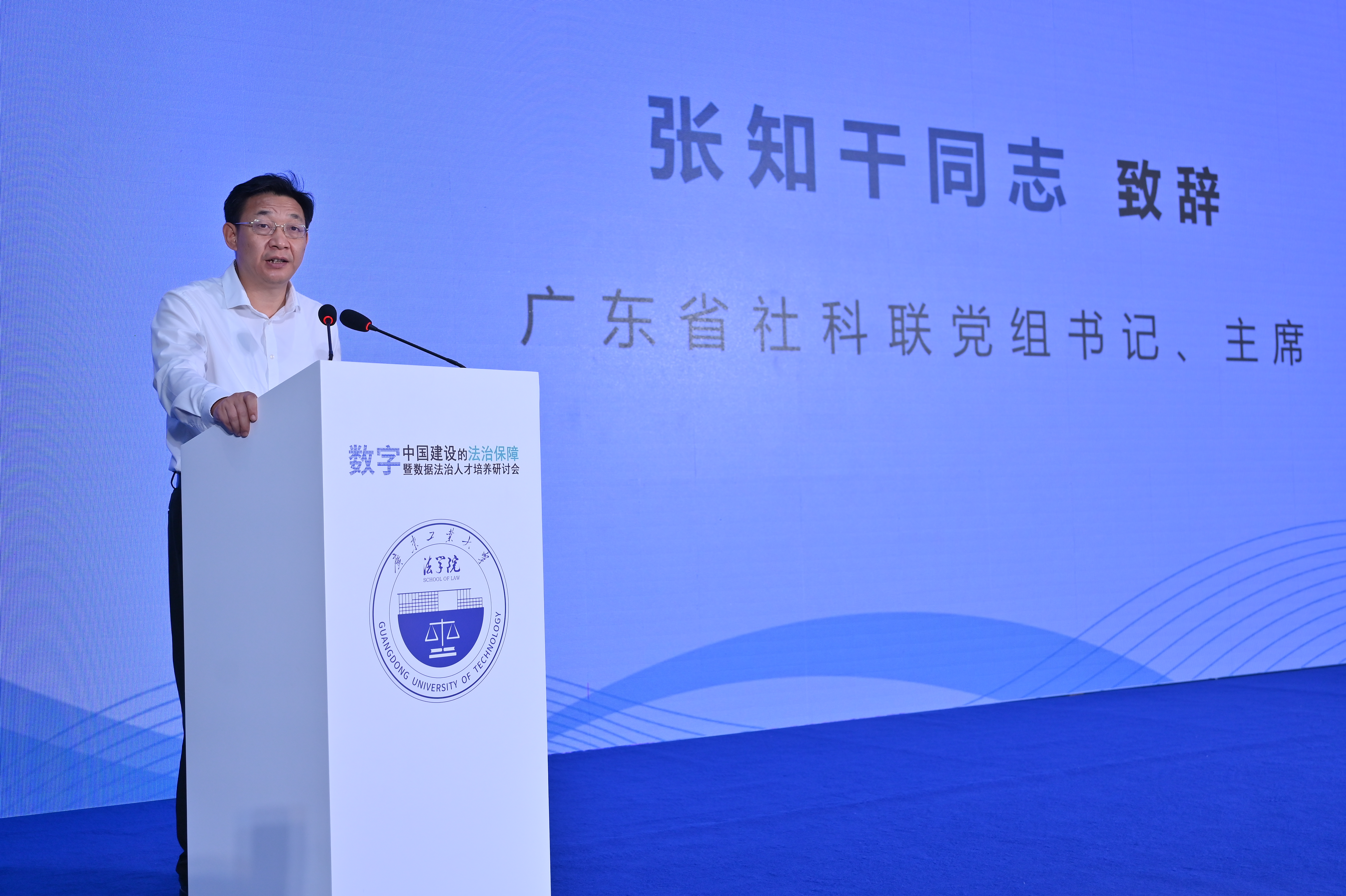 张知干对广工长期以来给予省社科联工作的大力支持表示衷心感谢。他指出,在数字中国建设方兴未艾、高歌猛进之时,聚焦法治保障中的重大理论和现实问题展开交流研讨正当其时、意义重大。他期待研讨会办出广工特色、打造学术范式、产生丰硕成果、形成示范效应,助推数字中国建设和数据法治人才培养。