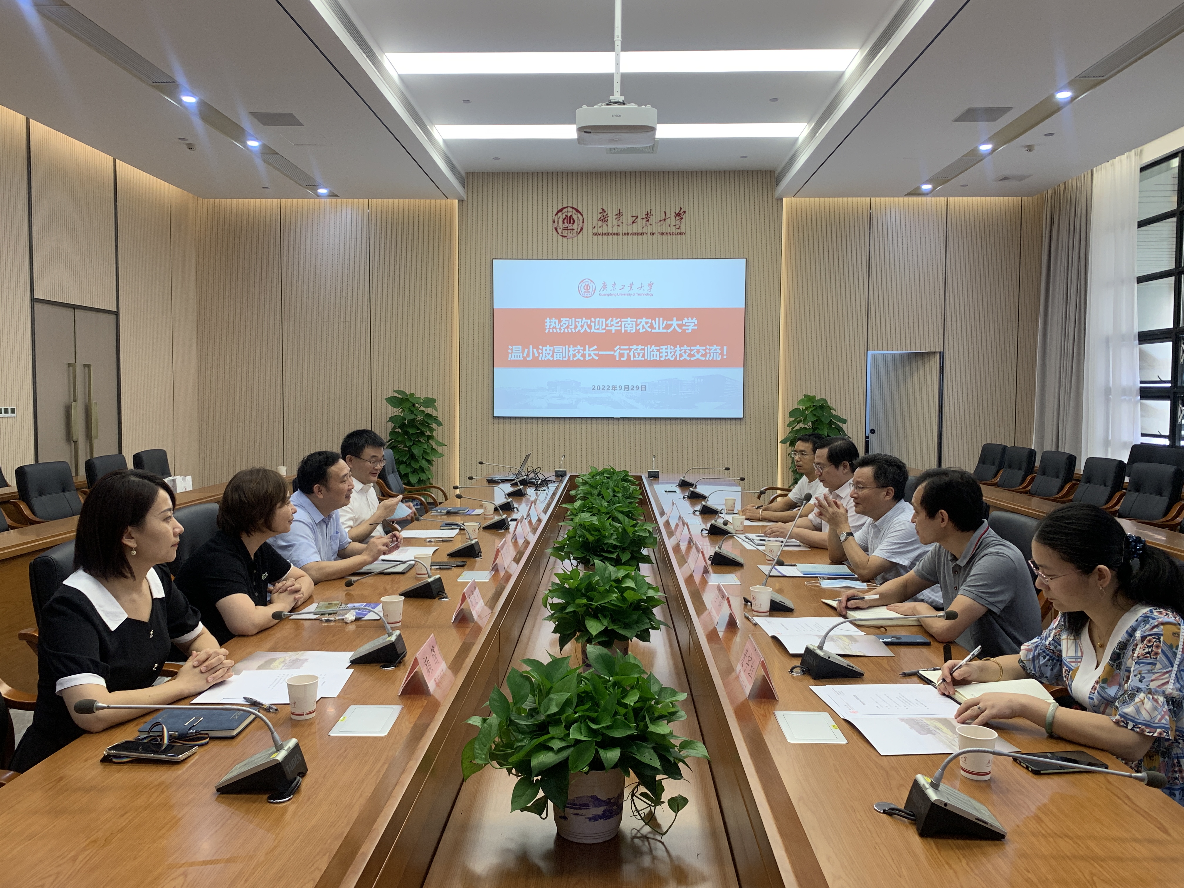 为加强校际合作,共同探索在新发展阶段,高校在学科建设、内部治理等方面创新改革的新路径,推动学校高质量快速发展。9月29日下午,华南农业大学副校长温小波带领发展规划处处长章家恩等一行5人来我校交流。我校副校长余林、发展规划处处长蔡宴朋等相关人员参加交流会。