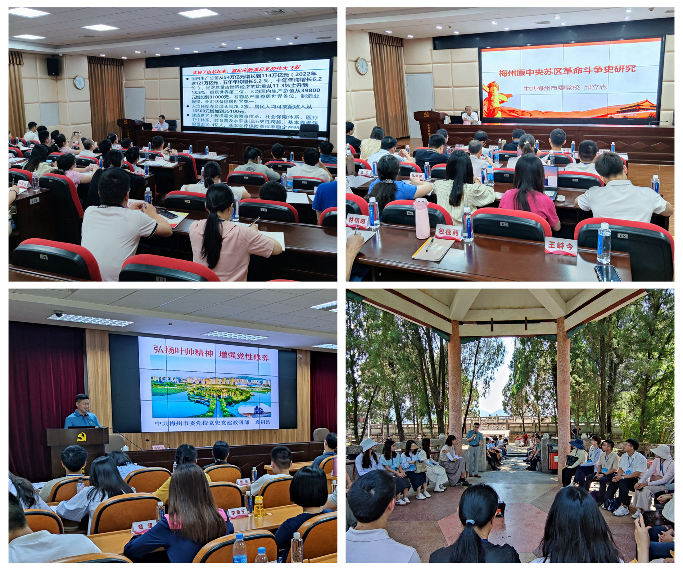 培训班邀请了梅州市委党校相关教师,开展了《新时代新征程的政治宣言和行动纲领》《弘扬叶帅精神,增强党性修养》《三河坝战役的“五个伟大”》《梅州原中央苏区革命斗争史研究》四场理论课程和专题党课,深入学习习近平新时代中国特色社会主义思想以及党的二十大精神的核心要义和理论实践成果,充分了解叶剑英元帅在党的历史上三次正确的人生选择和三次重大的革命贡献,重温三河坝战役的残酷与艰险,还原再现梅州原中央苏区的艰苦斗争史。