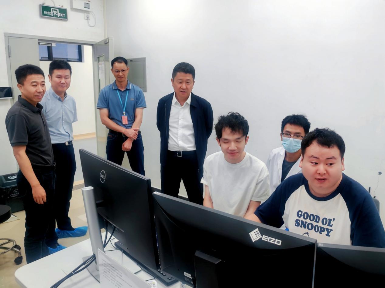 调研过程中,白建刚深入实验室,实地察看了大型仪器设备配置与运行状况,与一线分析测试人员交流大家的工作情况和具体分管设备的使用情况,重点听取了霍延平主任leyu乐鱼·官方web站登录入口中心日常管理运行机制、服务科研情况及双球差电镜试运行情况的汇报。