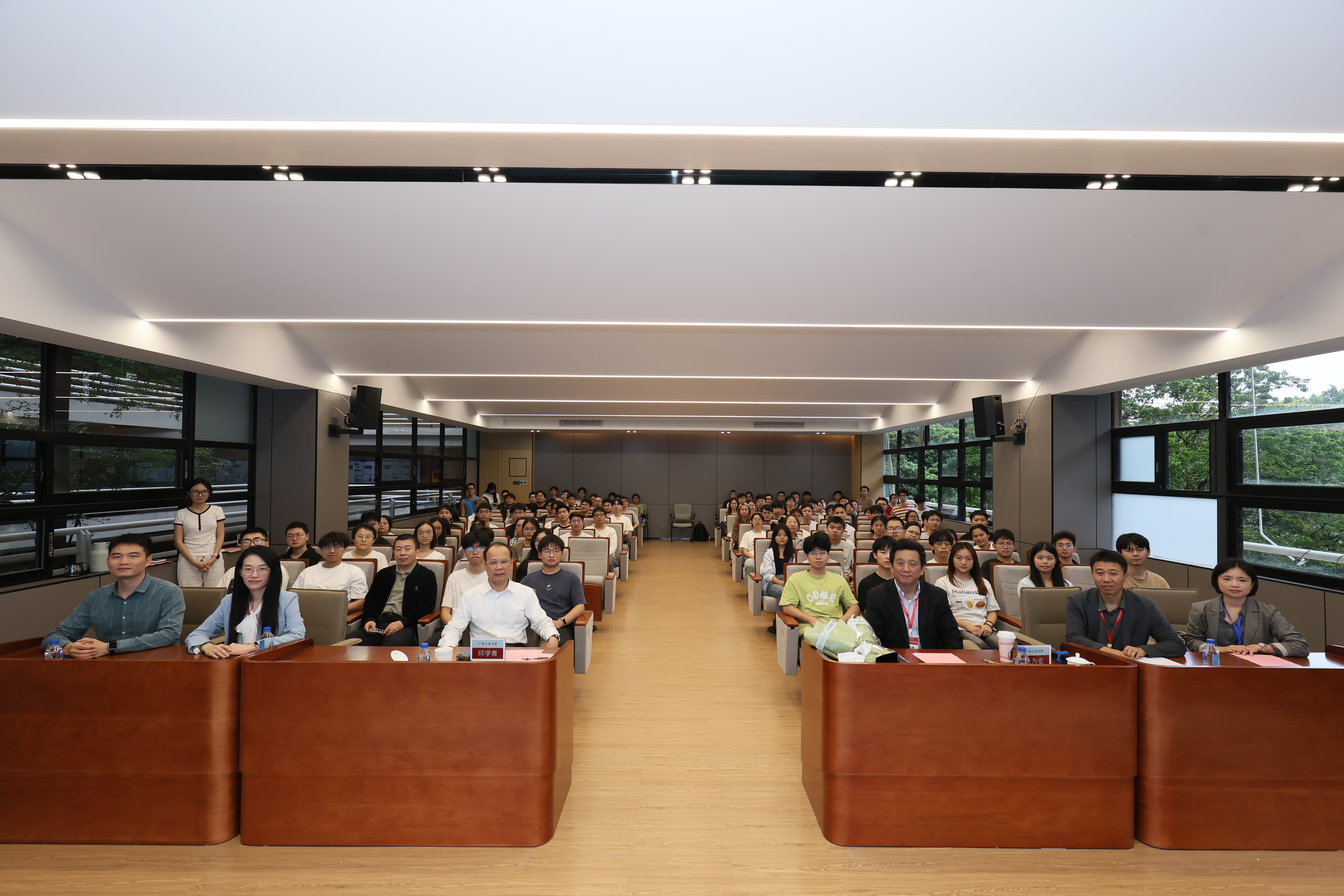 朱院士对光敏化学的应用前景充满信心,期待在场师生充分发挥有机变色材料成本低、稳定性好的特点,在大面积绿色建筑材料应用中取得新的突破。在互动环节,师生们踊跃提问,朱为宏院士细致解答。