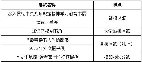 具体活动安排,请密切关注图书馆官网、公众号或订阅号通知。诚挚邀请全校师生积极参与各项活动,共同感受阅读与文化的无穷魅力!